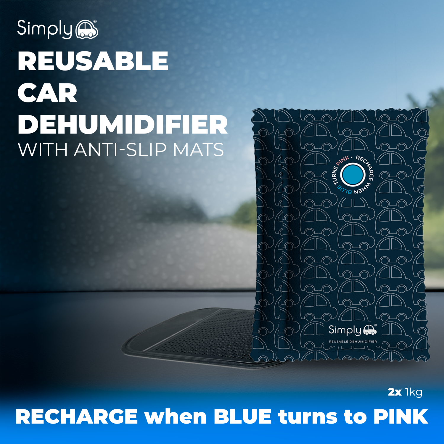 SIMPLY AUTO 2PK 1KG REUSABLE CAR DEHUMIDIFIER WITH ANTI SLIP MAT