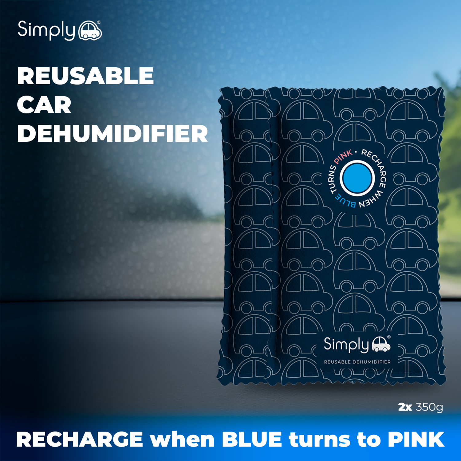 SIMPLY AUTO 2PK 350G REUSABLE CAR DEHUMIDIFIER