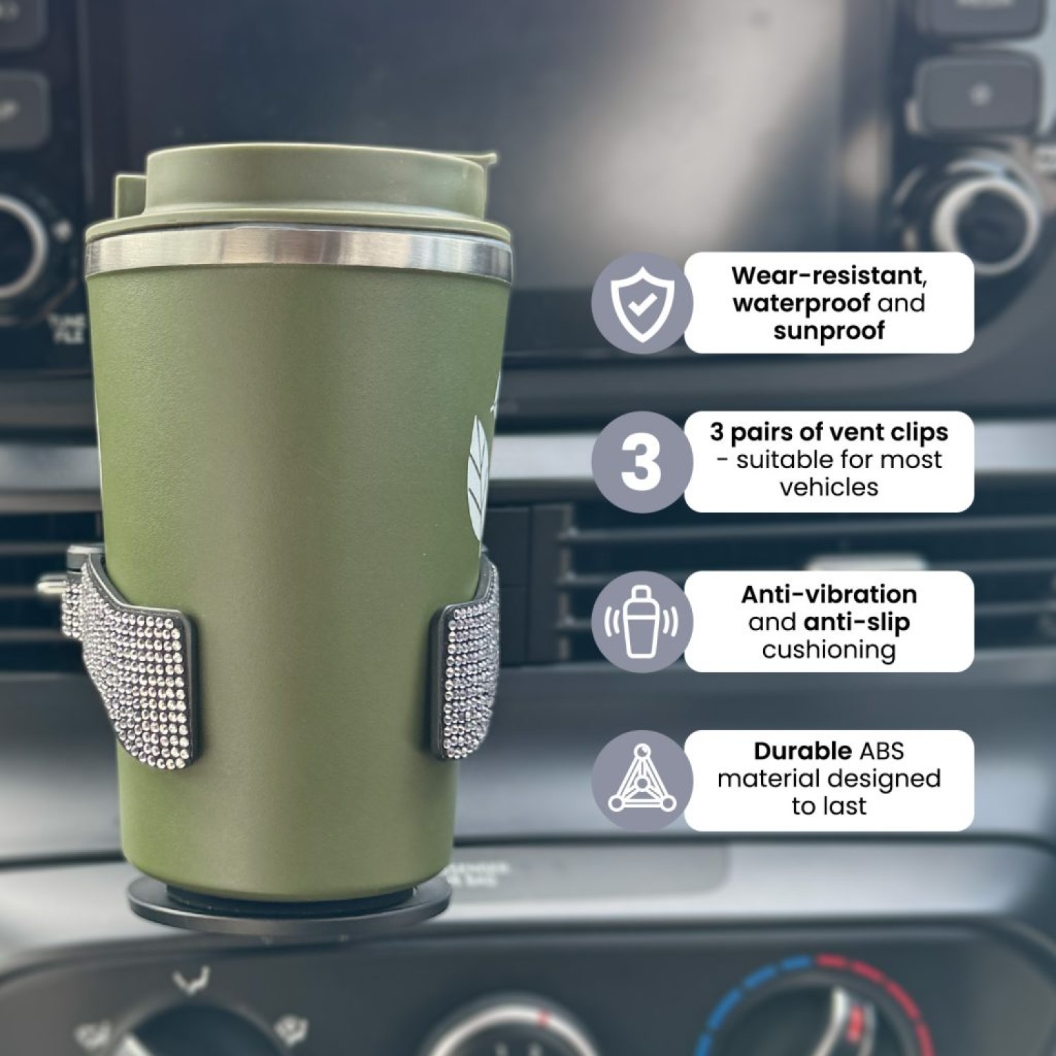 - STABLE HOLD — Keeps drinks upright and secure while driving.