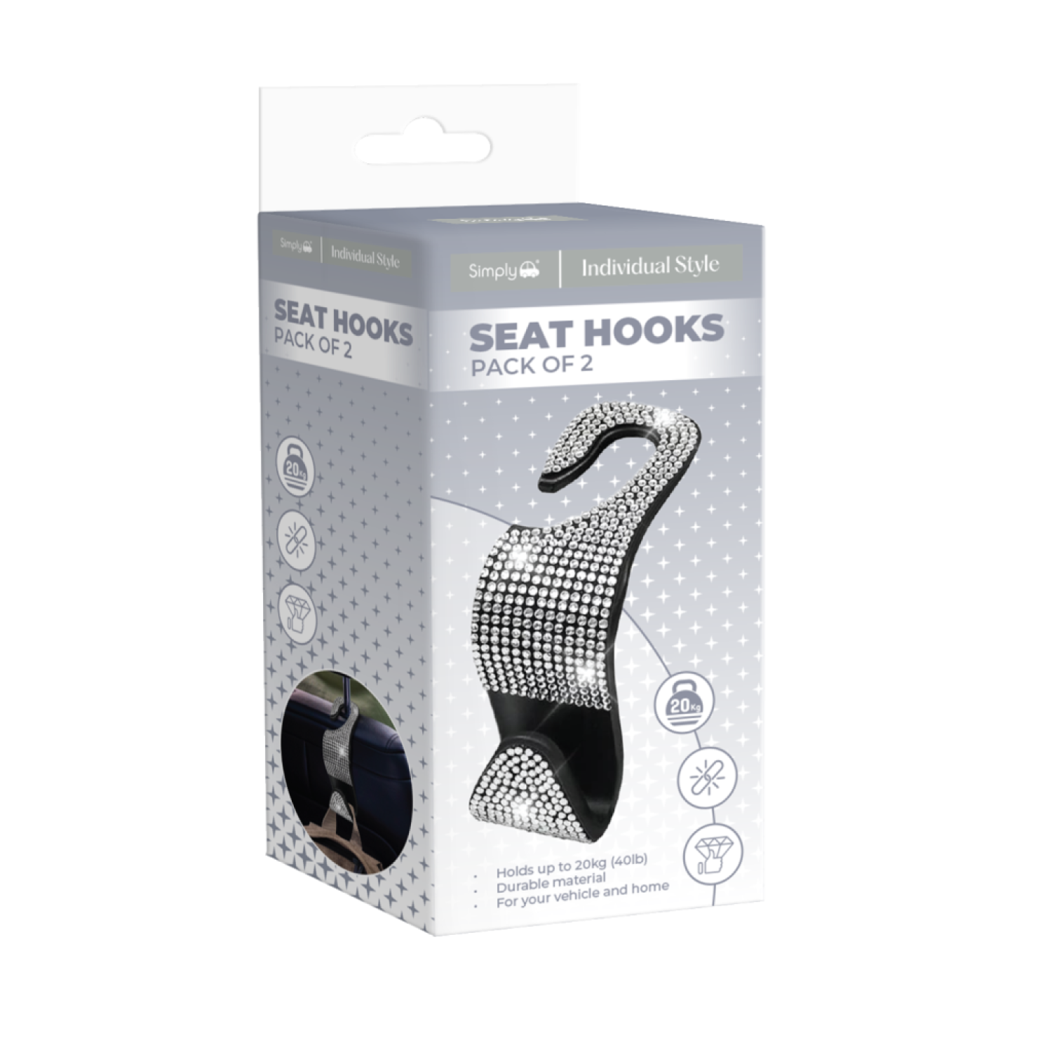 Organise your car interior with these Silver Seat Hooks. Perfect for hanging bags, groceries, and more—keep essentials off the floor and within reach.