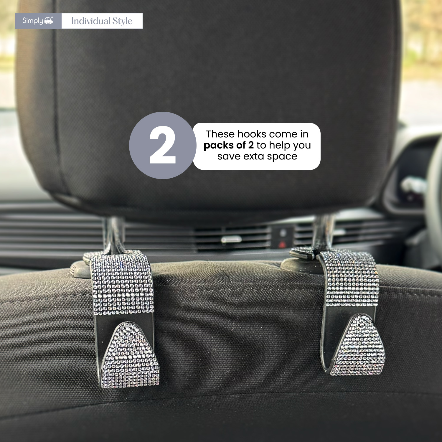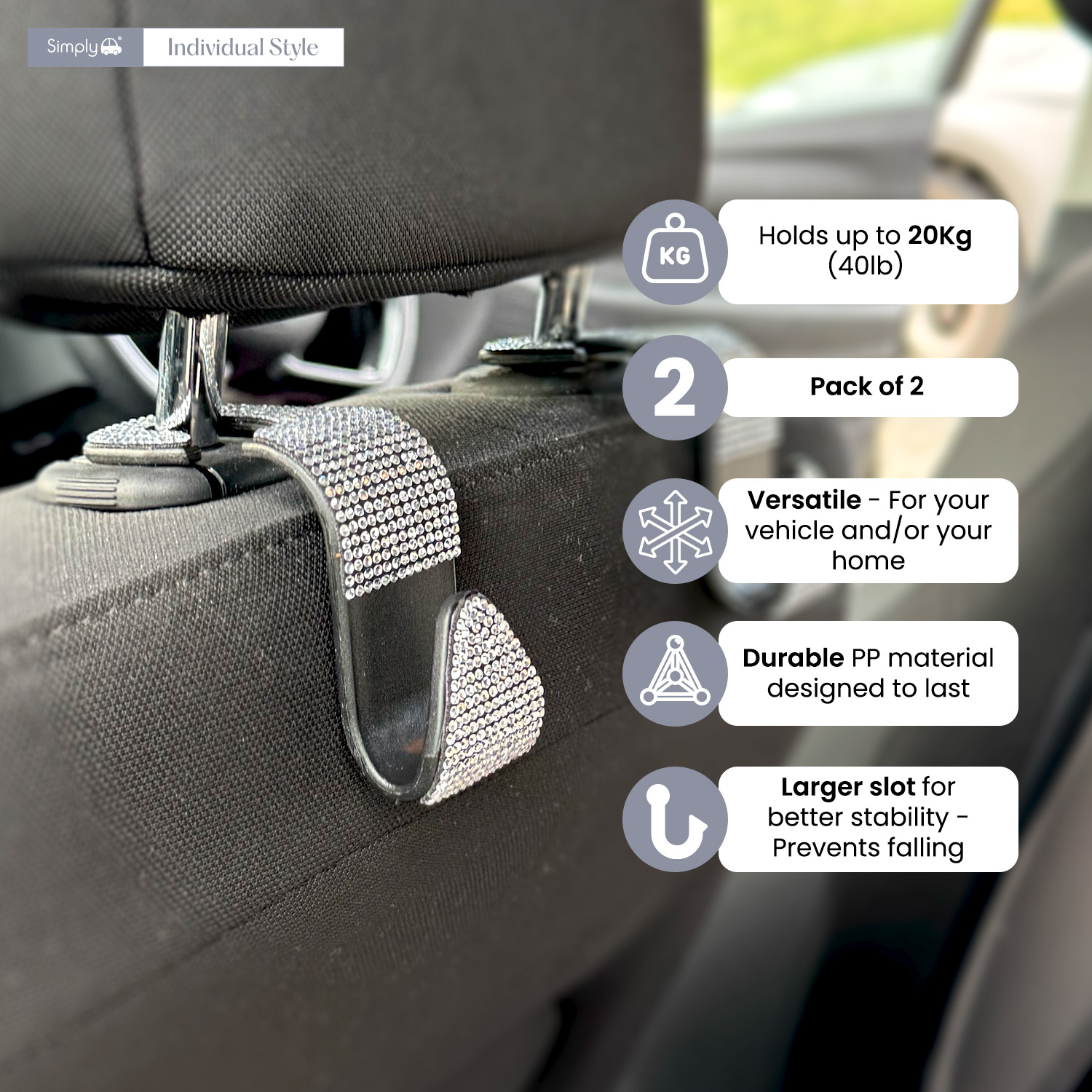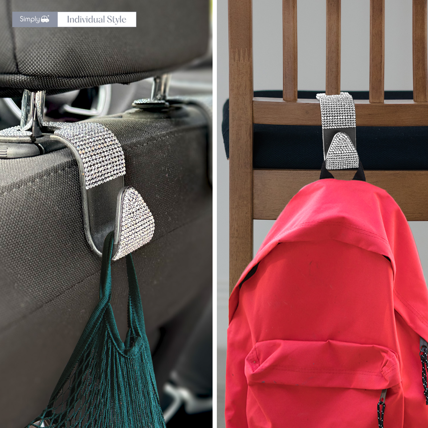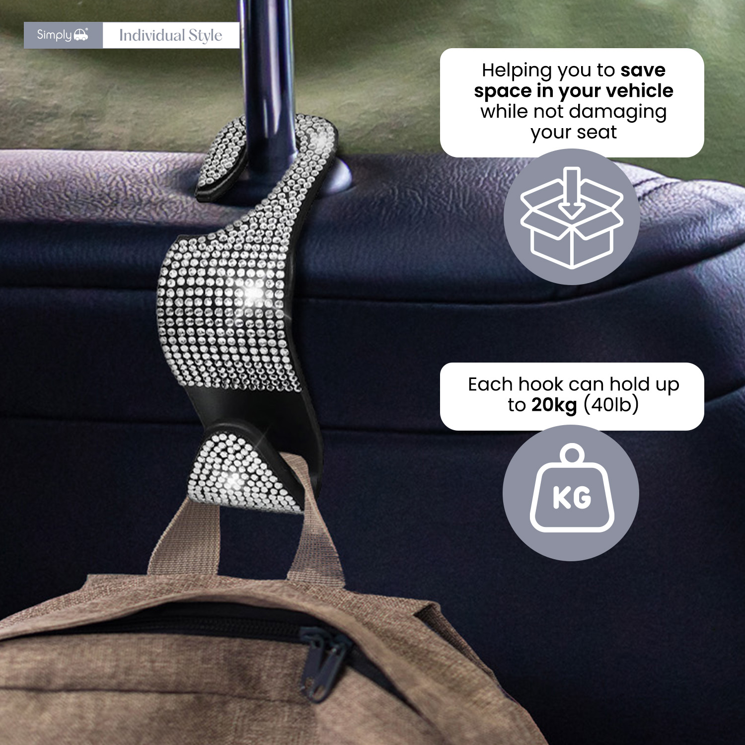 SIMPLY AUTO SILVER BLING BACK SEAT HOOKS BAGS
