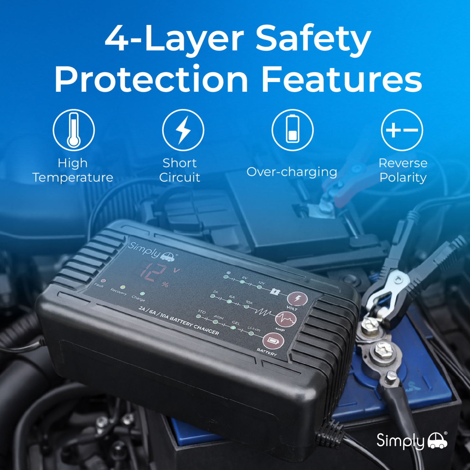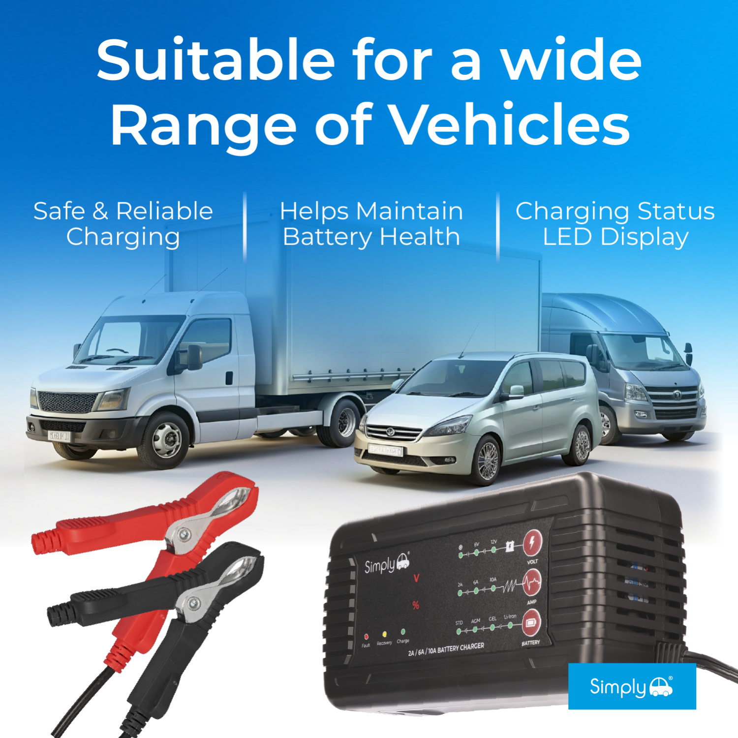 SIMPLY AUTO 10A/6A/2A 6V/12 PORTABLE BATTERY CHARGER