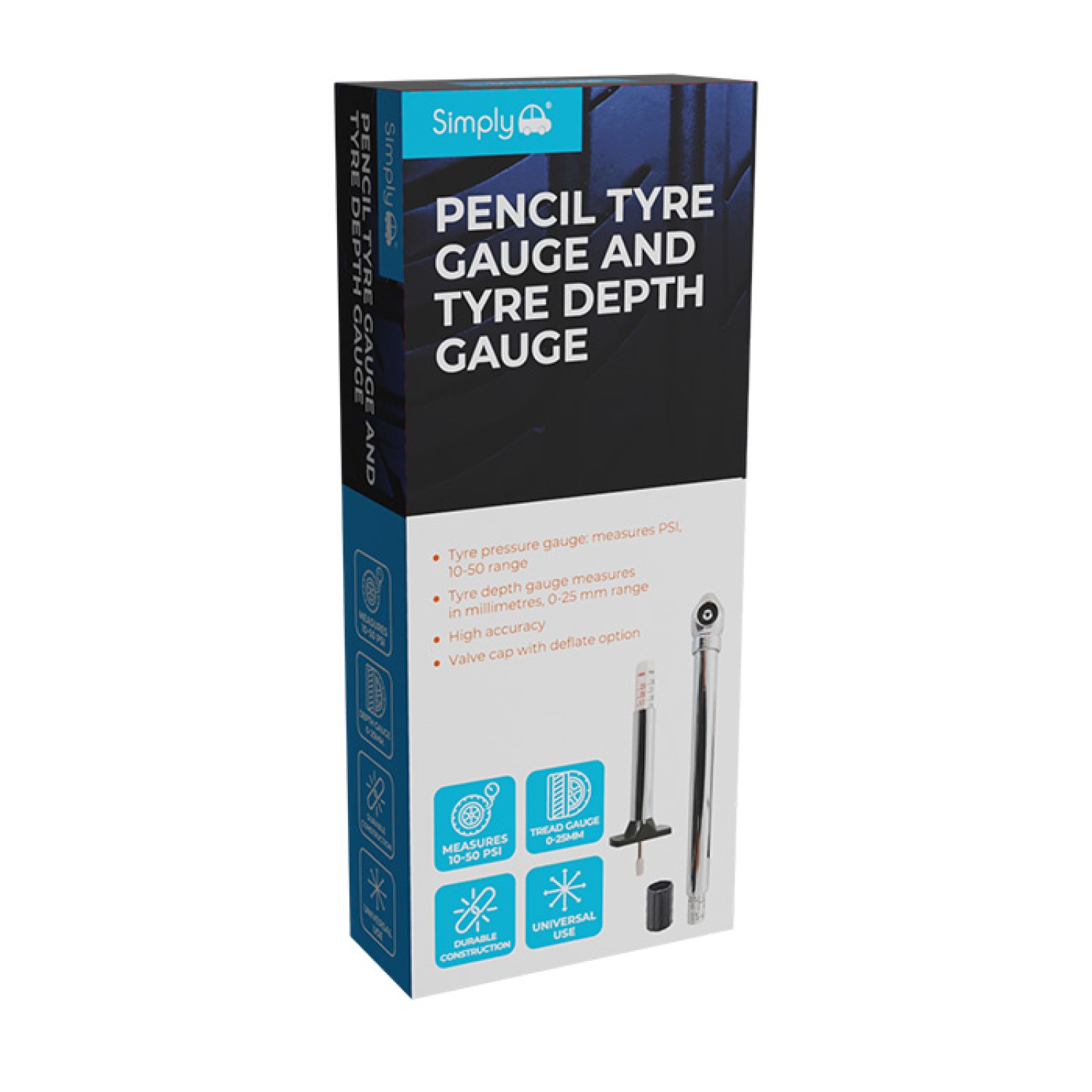 SIMPLY AUTO PENCIL TYRE GAUGE AND TYRE TREAD GAUGE