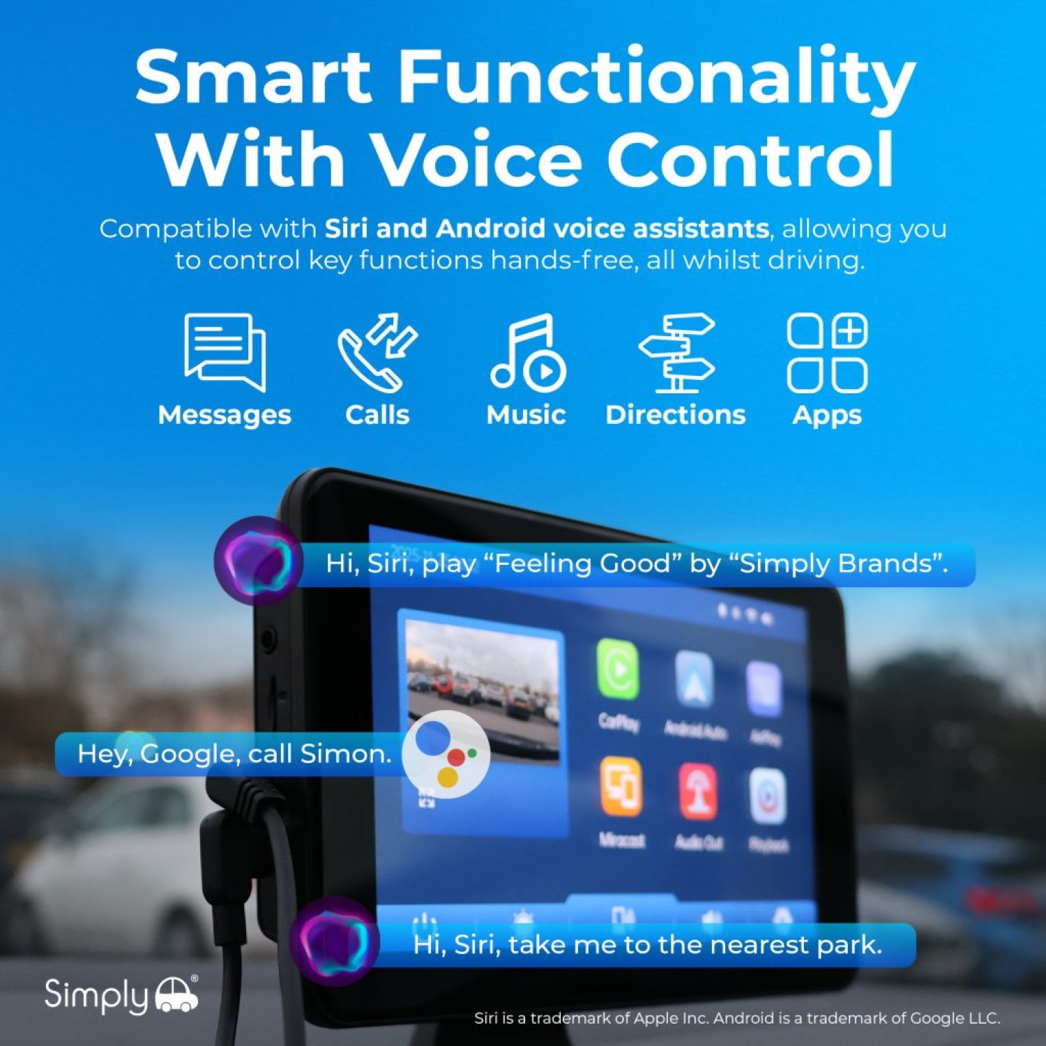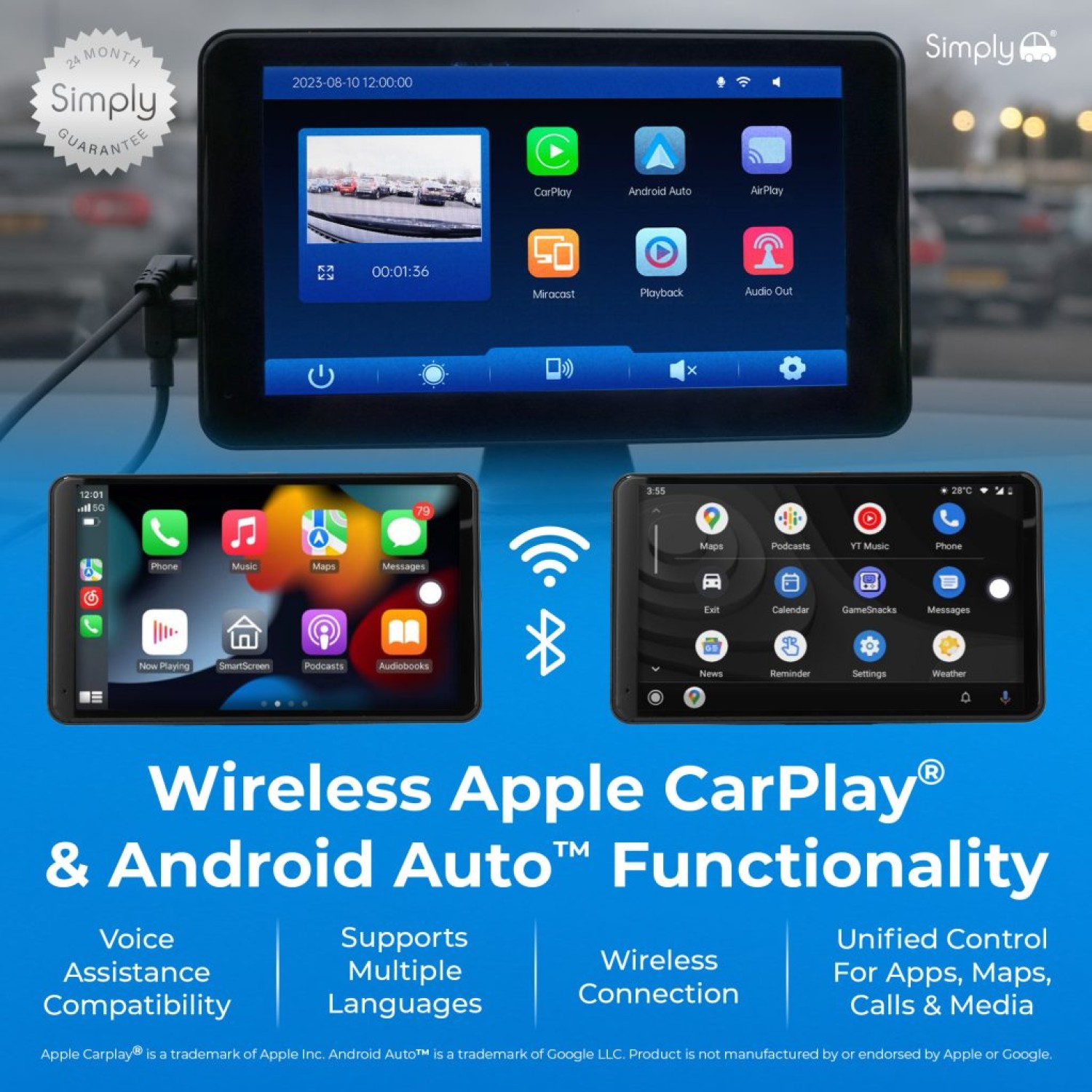 Apple CarPlay® is a trademark of Apple Inc. Android Auto™ is a trademark of Google LLC. Product is not manufactured or endorsed by Apple or Google.