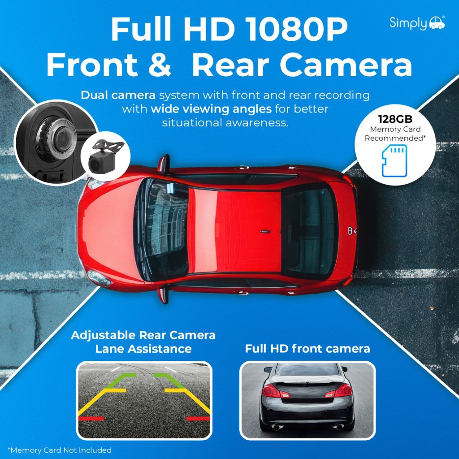 - DUAL FRONT & REAR 1080P CAMERA RECORDING — Simultaneously records the road ahead and behind in Full HD 1080P, providing comprehensive coverage and valuable evidence in the event of an incident.