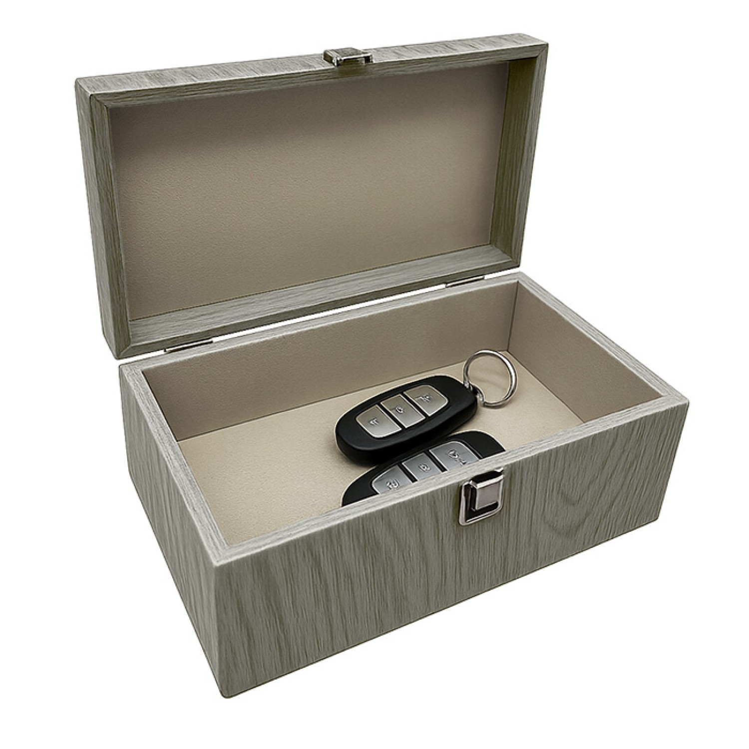 Protect your car from keyless entry theft with the Large Grey Faraday Box. Stylish, compact, and lined with signal-blocking material—it’s the secure way to store your car keys.