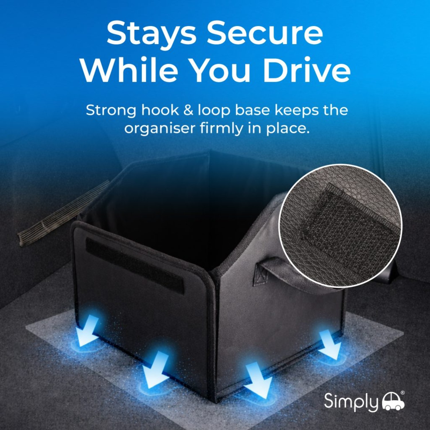 - Secure base — hook and loop fastening grips the boot carpet to stay in position during sudden stops and sharp turns