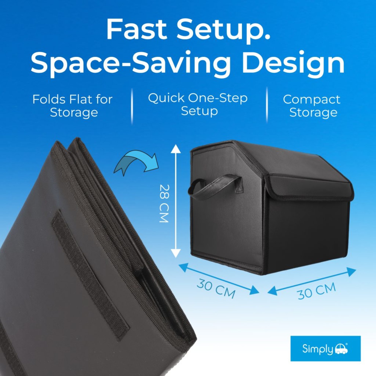- Space saving — folds completely flat when not in use so it doesn't permanently take up boot space