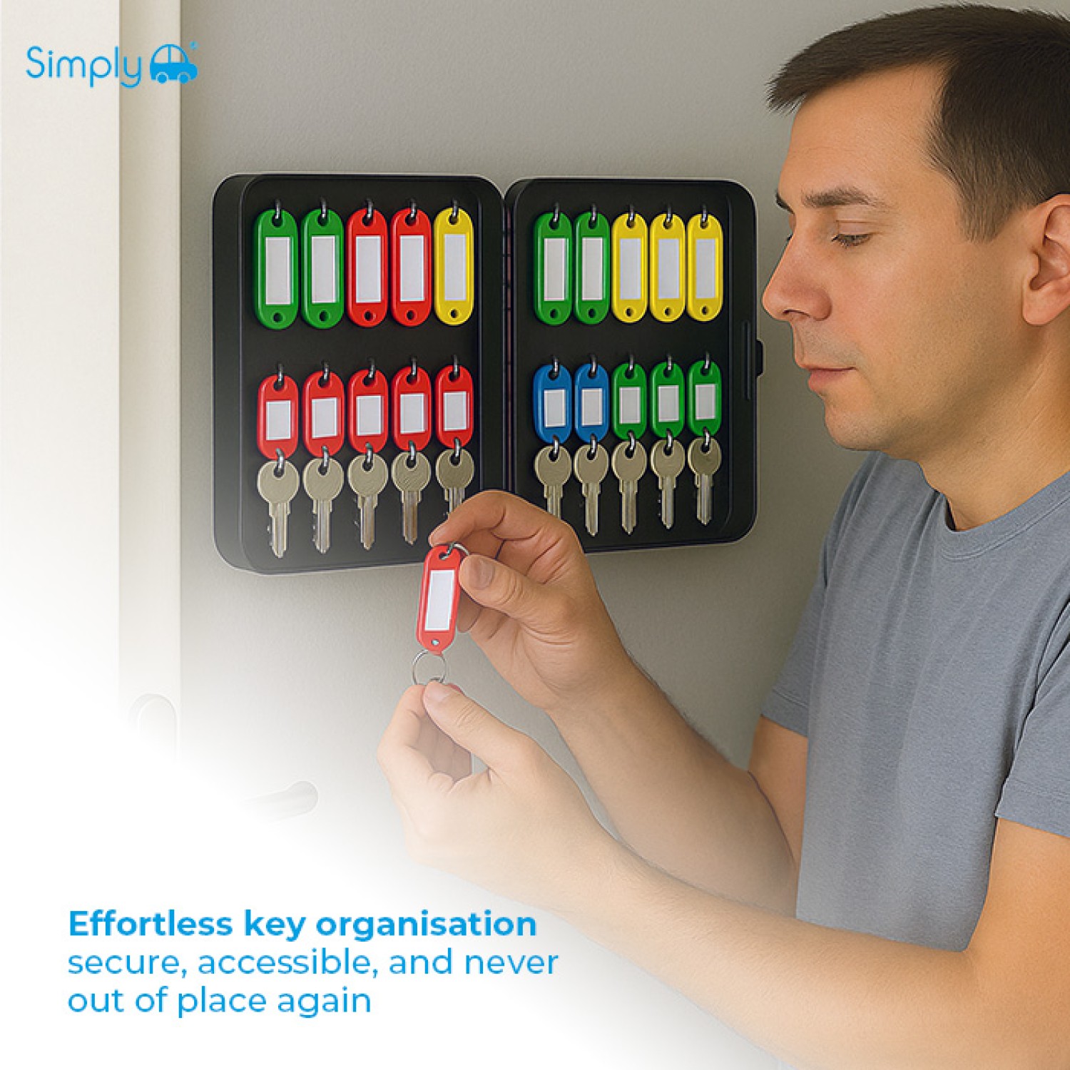 - SECURE STORAGE — Keeps spare keys, fobs, or access cards safe and easily accessible.