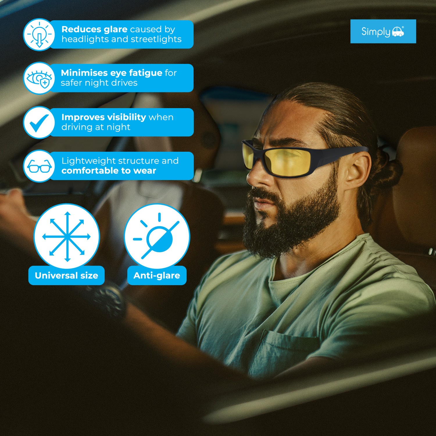 Anti-Glare Yellow Lenses — Helps reduce glare from oncoming headlights and harsh lighting.