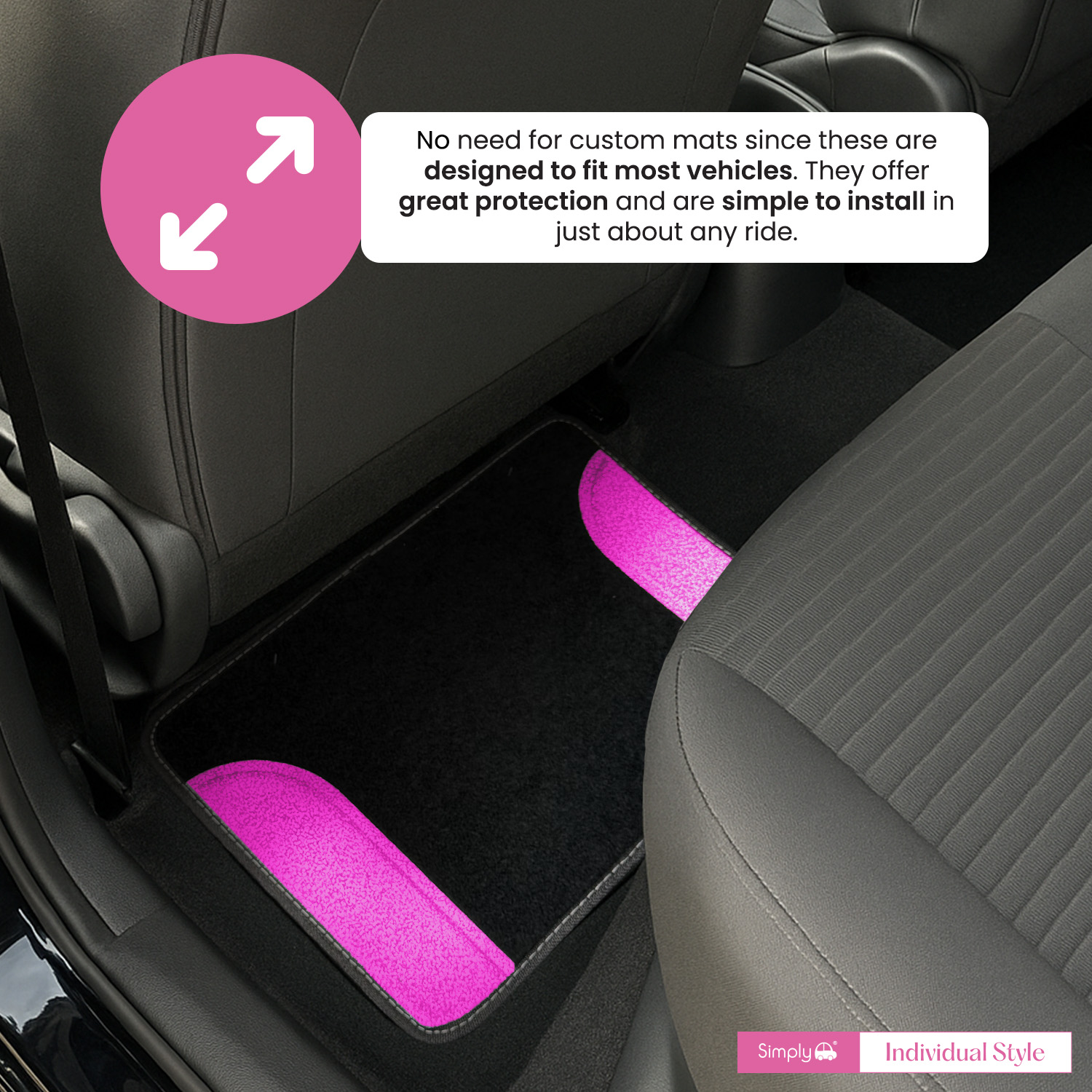 Protect your car’s interior in style with these durable, non-slip car mats featuring a pink sparkle trim. Designed to fit most vehicles, they offer full coverage and extra heel protection.