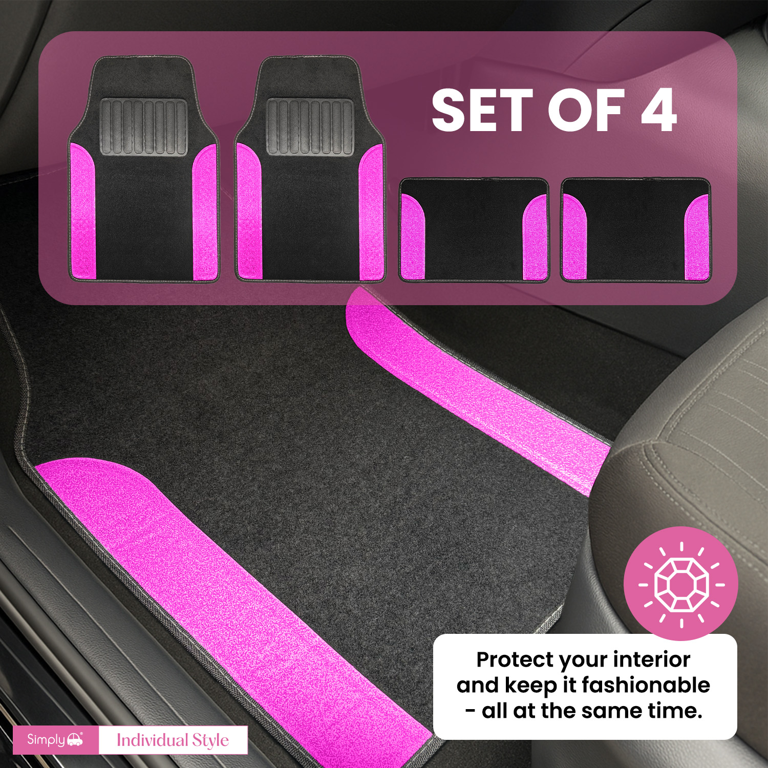 SIMPLY AUTO 4PC PINK BLING CARPET MATS