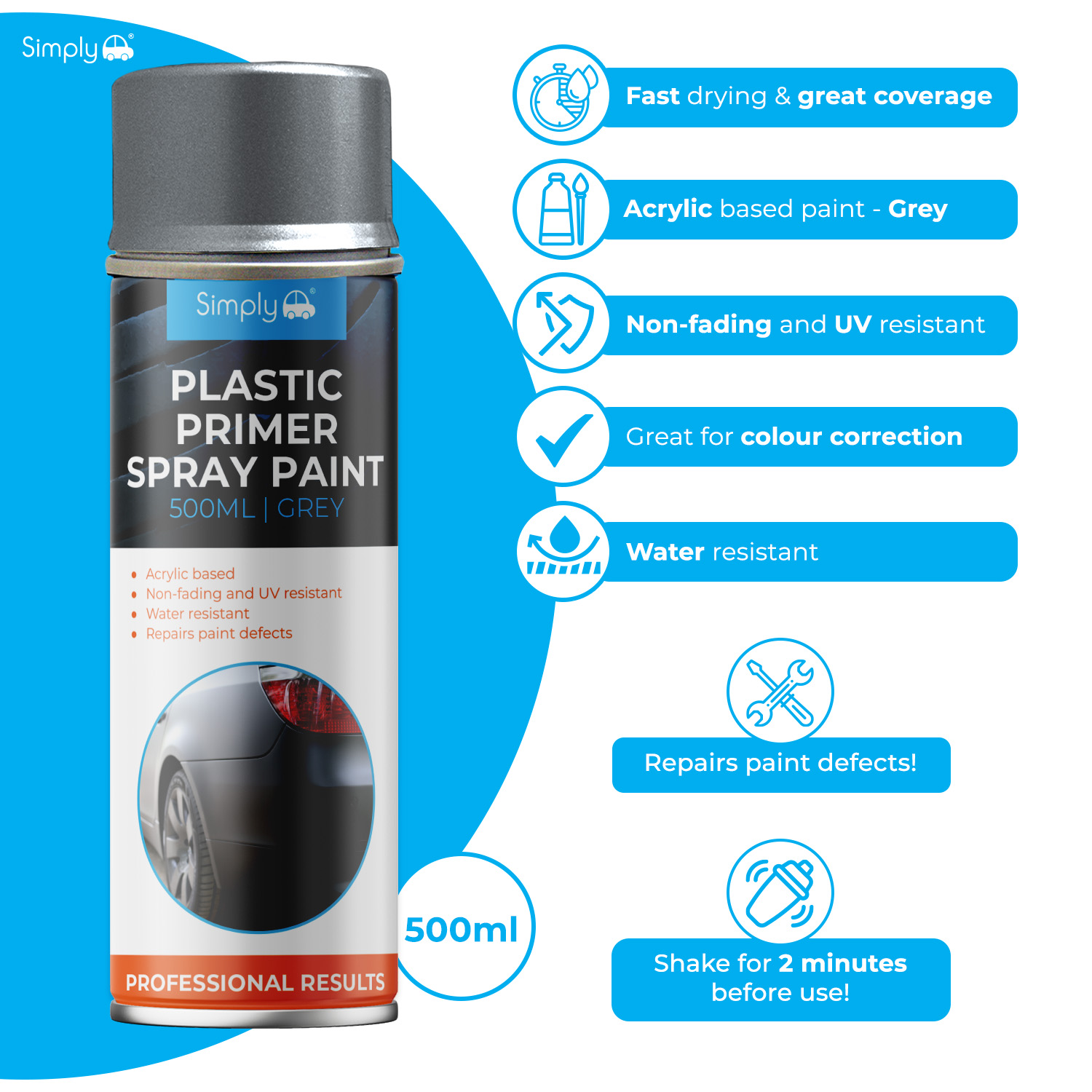 SIMPLY AUTO 500ML PLASTIC PRIMER GREY