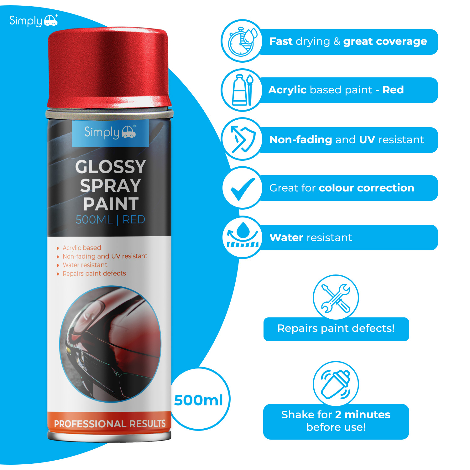SIMPLY AUTO Glossy Red Spray Paint 500ml
