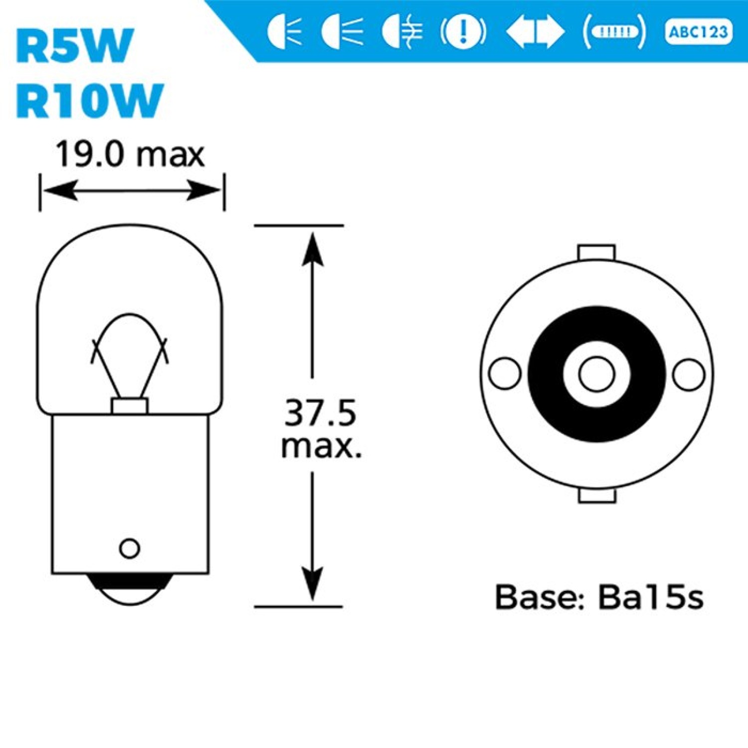 12V 10W BA15S BULB — Suitable for stop, auxiliary and indicator lighting applications.
